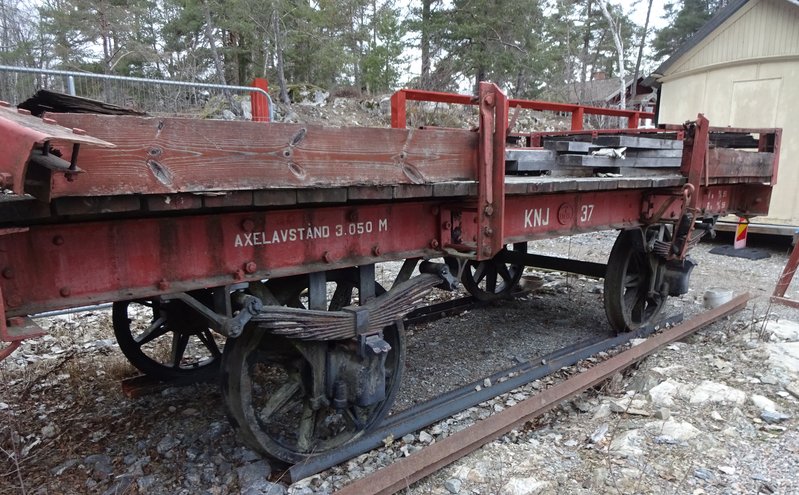 Flakvagnen SSnJ Pm 61 finns på platsen. Vid vagnen med sommarstugetak står följande text (se länk):